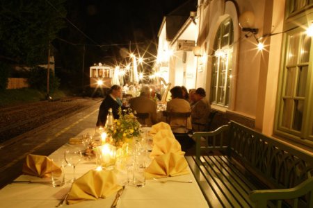 Durante le corse gastronomiche notturne con il trenino del Renon vi verranno servite cinque portate in altrettante stazioni, tra cui aperitivo e spuntino, una deliziosa minestra, un prelibato piatto di pasta, un secondo, un golosissimo dessert e per concludere un grappino. A ogni portata è abbinato un vino. La corsa sarà accompagnata da un complesso musicale.